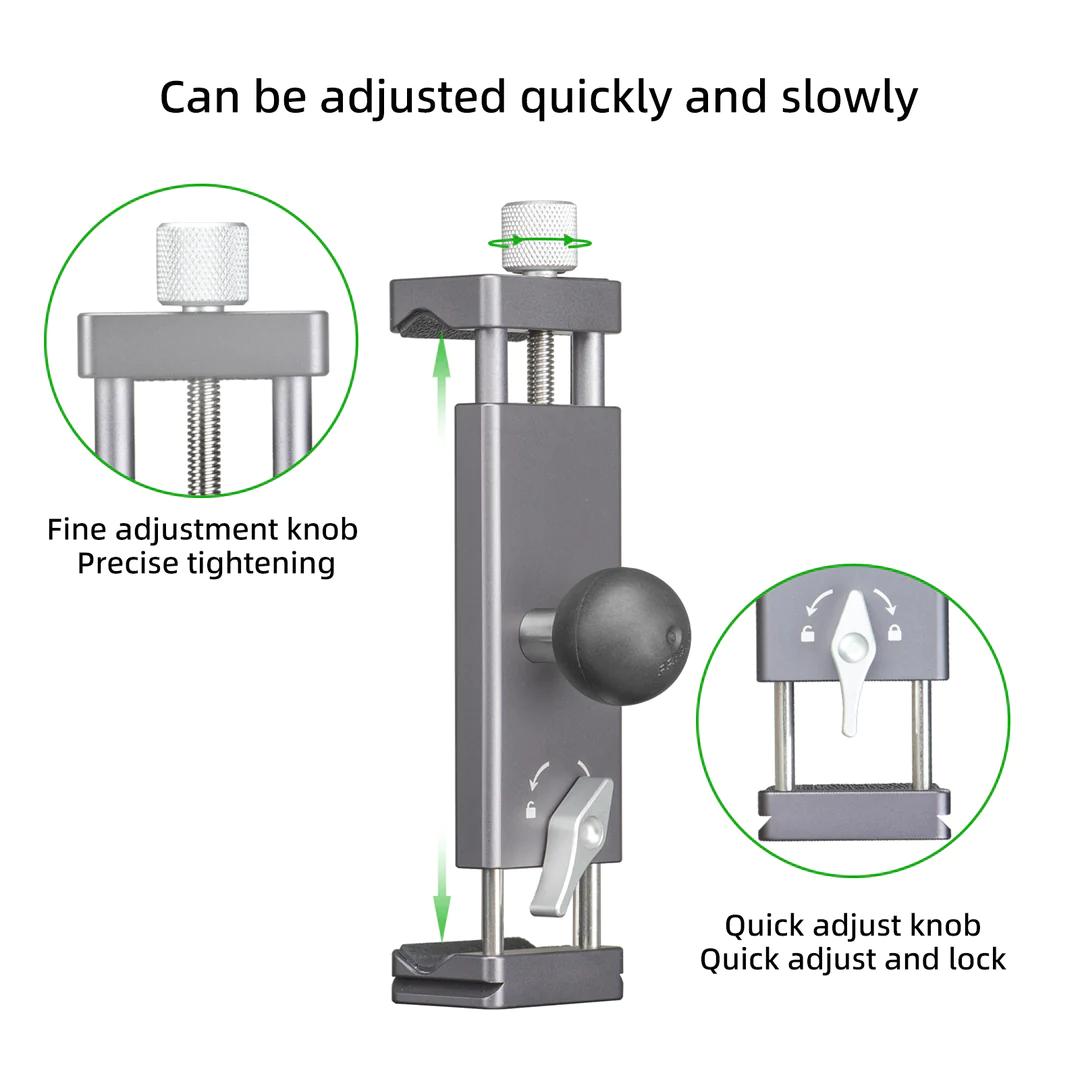 Discover the ultimate solution for securely holding and adjusting your tablet with the FANAUE Universal Holder. Engineered with two 1” round ball bases, this versatile holder ensures a secure grip for both tablets and phones. With its four steering ball heads, you can easily adjust it to your preferred viewing angles. Plus, the adjustable extension length accommodates various tablet models. Whether you're working or enjoying video entertainment, this universal holder provides the perfect solution. Experience your device and its content from any angle with the this universal holder!