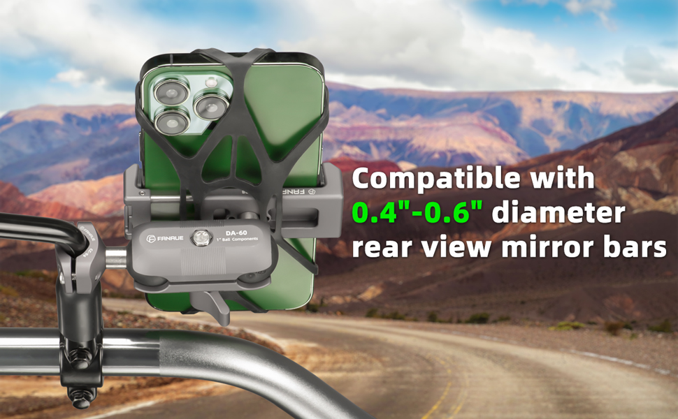 The set includes the FANAUE CC-06 Motorcycle Rearview Mirror Clip as the sturdy base, and the DA-60 Double Socket Arm, which connects the mobile phone holder with ease.