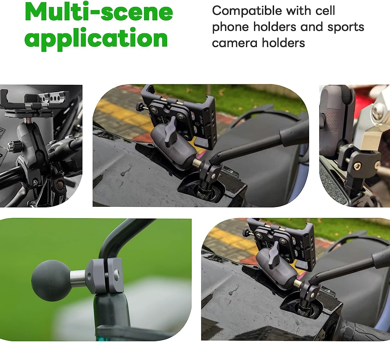 Our motorcycle phone holder mirror clip features a sleek and attractive design, making it the perfect accessory for motorcycle and bike enthusiasts. With its adjustable clip, installation is a breeze, and it provides exceptional stability even on rough rides. The 1-inch sphere allows for 360° rotation, allowing you to easily adjust the viewing angle of your handlebar phone mount for optimal visibility during your rides.